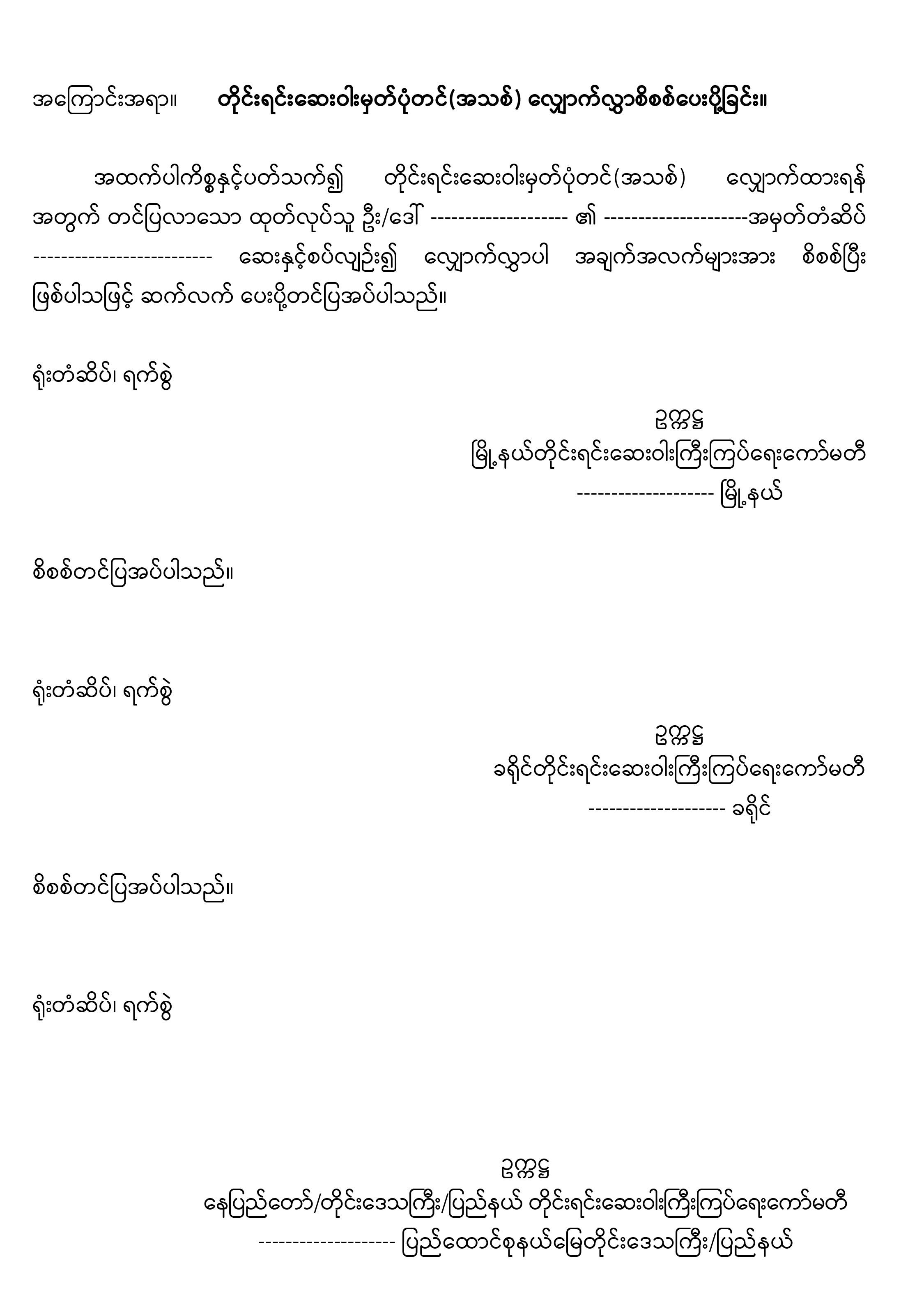 တိုင်းရင်းဆေးဝါးထုတ်လုပ်ခွင့်လိုင်စင်(သို့)တိုင်းရင်းဆေးဝါးမှတ်ပုံတင်(မူရင်း)များ(ပျောက်ဆုံး/ပျက်ဆီး)ပါက ထပ်မံထုတ်ပေးရန်