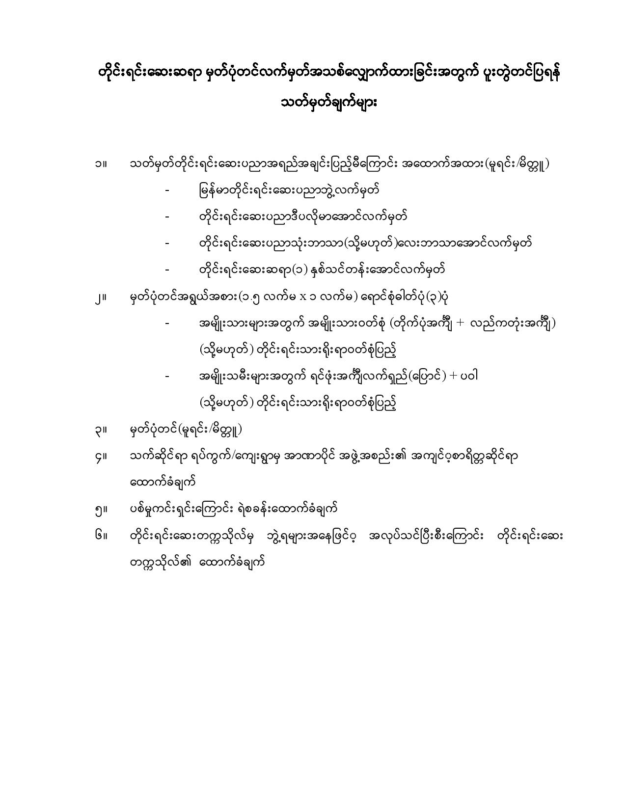 တိုင်းရင်းဆေးဆရာ မှတ်ပုံတင်လက်မှတ်အသစ်လျှောက်ထားခြင်းအတွက် ပူးတွဲတင်ပြရန် သတ်မှတ်ချက်များ
