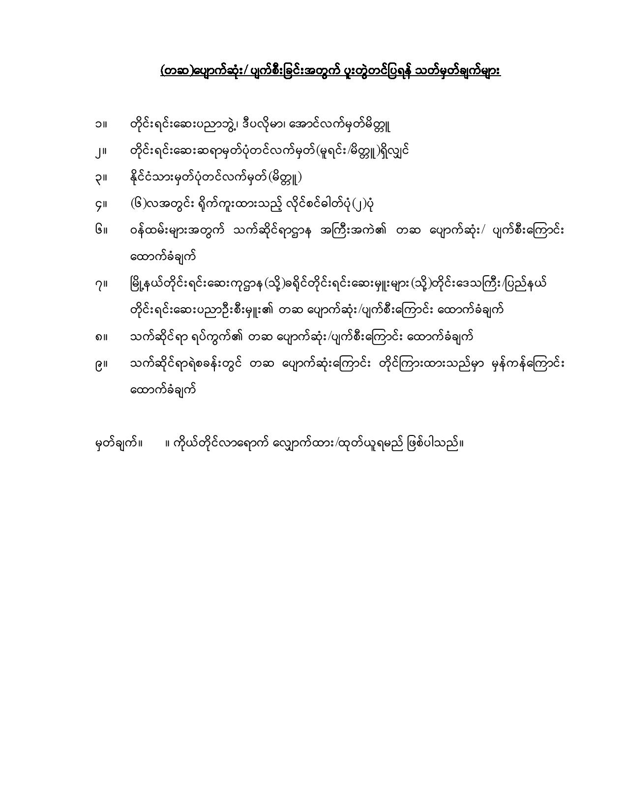 (တဆ)ပျောက်ဆုံး/ ပျက်စီးခြင်းအတွက် ပူးတွဲတင်ပြရန် သတ်မှတ်ချက်များ