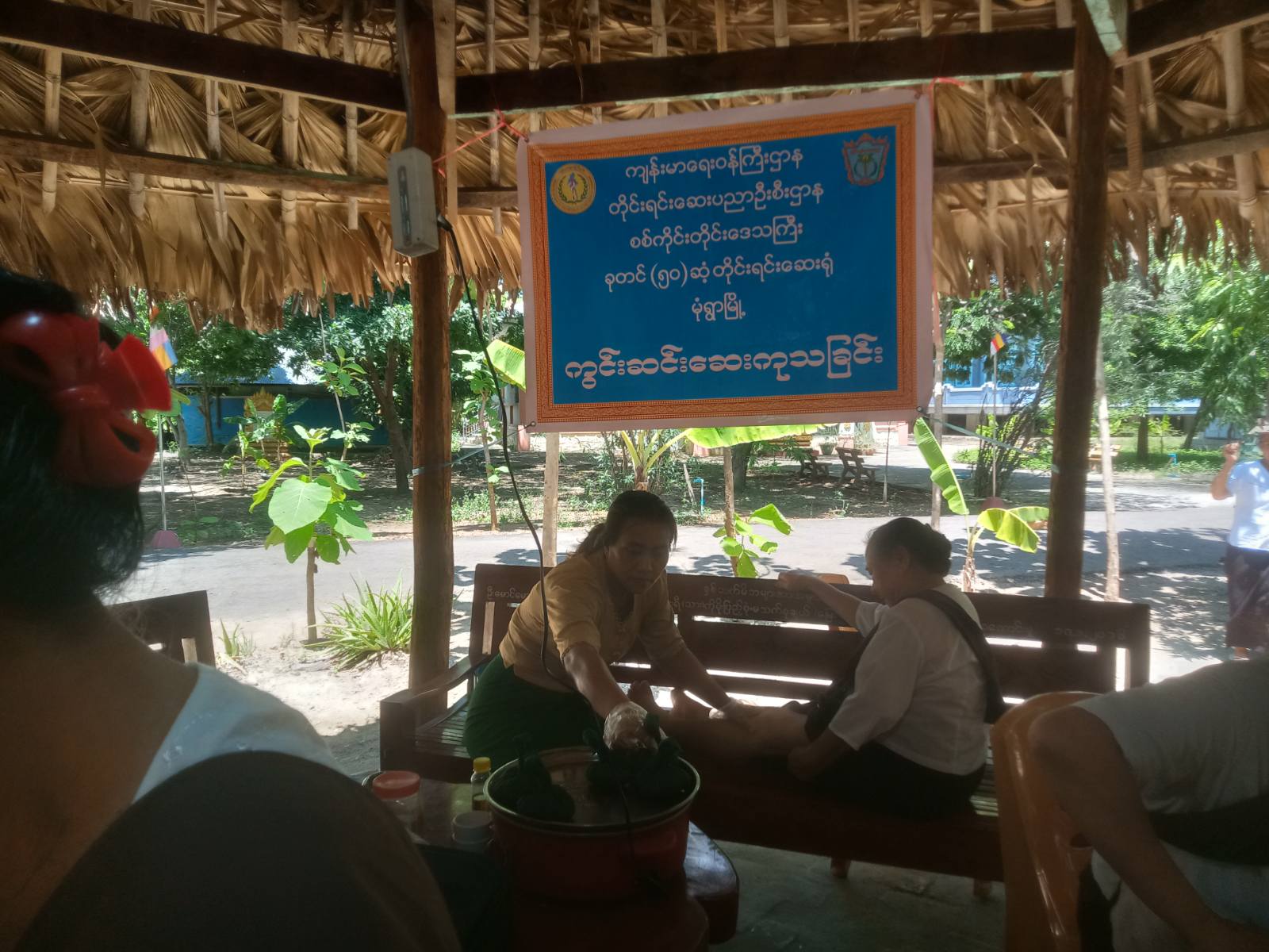 စစ်ကိုင်းတိုင်းဒေသကြီး၊ ခုတင် (၅၀)ဆံ့ တိုင်းရင်းဆေးရုံ၊ မုံရွာမှ ဆေးရုံအုပ် ဒေါ်တင်နန်းနွယ် ဦးဆောင်သော ကွင်းဆင်းဆေးကုသရေးအဖွဲ့သည် (၅-၉-၂၀၂၅) ရက်နေ့တွင် မုံရွာမြို့ဓမ္မရံသီ မိုးကုတ်ဝိပတ်ဿနာတရား ရိပ်သာတွင် ဝါတွင်းတရားစခန်းဝင်ရောက်တရား အားထုတ် နေကြသည့် ယောဂီများအား ကွင်းဆင်းဆေးကုသခြင်း ဆောင်ရွက်ခဲ့ကြရာ ယောဂီ အမျိုးသား (၃၂)ဦး၊ ယောဂီ အမျိုးသမီး (၄၈) ဦး၊ စုစုပေါင်း (၈၀) ဦးအား တိုင်းရင်းဆေးဖြင့် ကျန်းမာရေးစောင့်ရှောက်မှုပေးခဲ့ပါသည်။