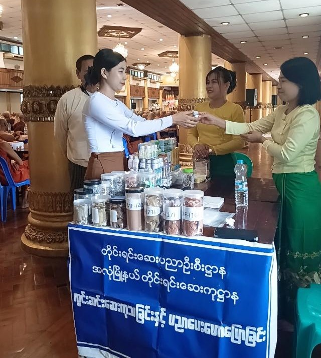 ရန်ကုန်တိုင်းဒေသကြီးသံဃနာယကအဖွဲ့(ဂိုဏ်းပေါင်းစုံ) က ကြီးမှူးဖွင့်လှစ်သော သံဃနာယကနှင့် ဝိနည်းဓိုရ်သင်တန်း ကို ရွှေတိဂုံစေတီ တောင်ဘက်မုခ်အနီး တပ်မတော်ဓမ္မာရုံ၌ (၈-၁၀-၂၀၂၅ )ရက်နေ့မှ (၁၂-၁၀-၂၀၂၅) ရက်နေ့အထိ ဖွင့်လှစ်ရာ တိုင်းရင်းဆေးပညာဦးစီးဌာန၊ တိုင်းဒေသကြီး ဦးစီးဌာနမှူးဦးဆောင်၍ အနောက်ပိုင်းခရိုင်တိုင်းရင်းဆေးကုဌာနနှင့် အလုံမြို့နယ် တိုင်းရင်းဆေးကုဌာနတို့မှ ခရိုင်တိုင်းရင်းဆေးမှူး ဒေါ်ရည်မွန်အောင်၊ ဒု-တိုင်းရင်းဆေးမှူး ဒေါ်စန္ဒာအေး၊ အကြီးတန်းစာရေး ဒေါ်မေဇော်ဇော်ချိုတို့ပါဝင်သော ကွင်းဆင်းဆေးကုသရေးအဖွဲ့က ဆရာတော်၊ သံဃာတော်များနှင့် ကြွရောက်လာကြသော ပရိတ်သတ်တို့အား တိုင်းရင်းဆေးဖြင့်ကျန်းမာရေး စောင့်ရှောက်မှုပေးလျက်ရှိပါသည်။