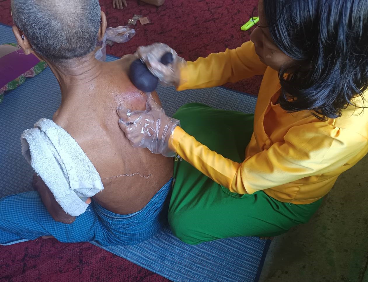 ကျန်းမာရေးဝန်ကြီးဌာန တိုင်းရင်းဆေးပညာဦးစီးဌာန(ရုံးချုပ်)နှင့် ပဲခူးတိုင်းဒေသကြီး တိုင်းဒေသကြီးဦးစီးဌာနမှူး၏ လမ်းညွှန်မှူဖြင့် (၇-၁၀-၂၀၂၅)ရက်နေ့တွင် ပြည်ခရိုင်၊ ဝက်ထီးကန်မြို့နယ် တိုင်းရင်းဆေးကုဌာနမှ လက်ထောက်တိုင်းရင်းဆေးမှူး ဒေါ်စံရီတာသည် ဝက်ထီးကန်မြို့နယ် အလိုတော်ရကျေးရွာ၌ ကျား(၅)ဦး မ(၁၅)ဦးစုစုပေါင်း (၂၀)ဦးအားတိုင်းရင်းဆေးပညာဖြင့် ကွင်းဆင်းဆေးကုသမှု ဆောင်ရွက်ခဲ့ပါသည်။