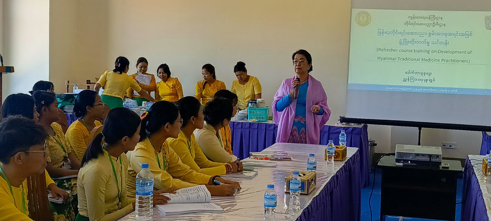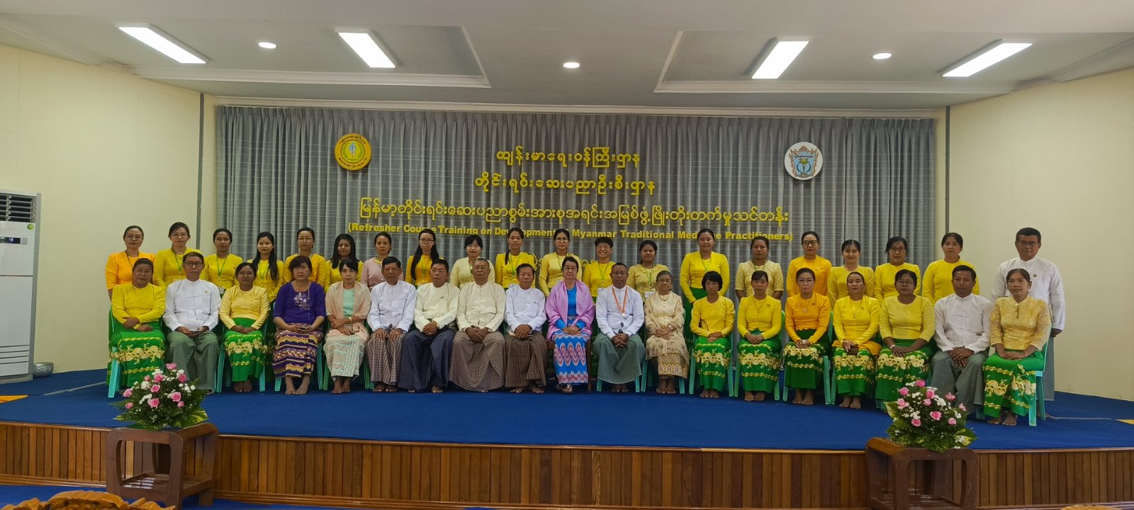 ကျန်းမာရေးဝန်ကြီးဌာန၊ တိုင်းရင်းဆေးပညာဦးစီးဌာနအနေဖြင့် မြန်မာ့တိုင်းရင်းဆေးပညာ စွမ်းအားစုအရင်းအမြစ် ဖွံ့ဖြိုးတိုးတက်မှုသင်တန်း (Refresher course training on Development of Myanmar Traditional Medicine Practitioners) ဖွင့်ပွဲအခမ်းအနားကို (၂၇-၁၀-၂၀၂၅) ရက်နေ့တွင် နေပြည်တော်၊ ရုံးအမှတ် (4-C) တိုင်းရင်းဆေးပညာဦးစီးဌာန(ရုံးချုပ်) အစည်းအဝေးခန်းမ၌ ကျင်းပ ပြုလုပ်ရာ ညွှန်ကြားရေးမှူးချုပ်၊ ဒုတိယညွှန်ကြားရေးမှူးချုပ်၊ တိုင်းရင်းဆေးတက္ကသိုလ်မှ ပါမောက္ခ၊ ဌာနမှူးများ၊ Honorble Professors များ၊ ညွှန်ကြားရေးမှူးများ၊ ဒုတိယညွှန်ကြားရေးမှူးများ၊ တာဝန်ရှိပုဂ္ဂိုလ်များ၊ တိုင်းရင်း ဆေးနှင့်ဆက်စပ်အဖွဲ့အစည်းများဖြစ်သော မြန်မာနိုင်ငံတိုင်းရင်းဆေးကောင်စီ၊ မြန်မာနိုင်ငံတိုင်းရင်းဆေးဆရာ အသင်း၊ တိုင်းရင်းဆေးပညာရပ်ဆိုင်ရာအကြံပေးအဖွဲ့တို့မှ တာဝန်ရှိသူများနှင့် တိုင်းဒေသကြီးနှင့် ပြည်နယ် အသီးသီးမှ သင်တန်းသား၊ သင်တန်းသူများ (၄၀) ဦး တက်ရောက်ပါသည်။