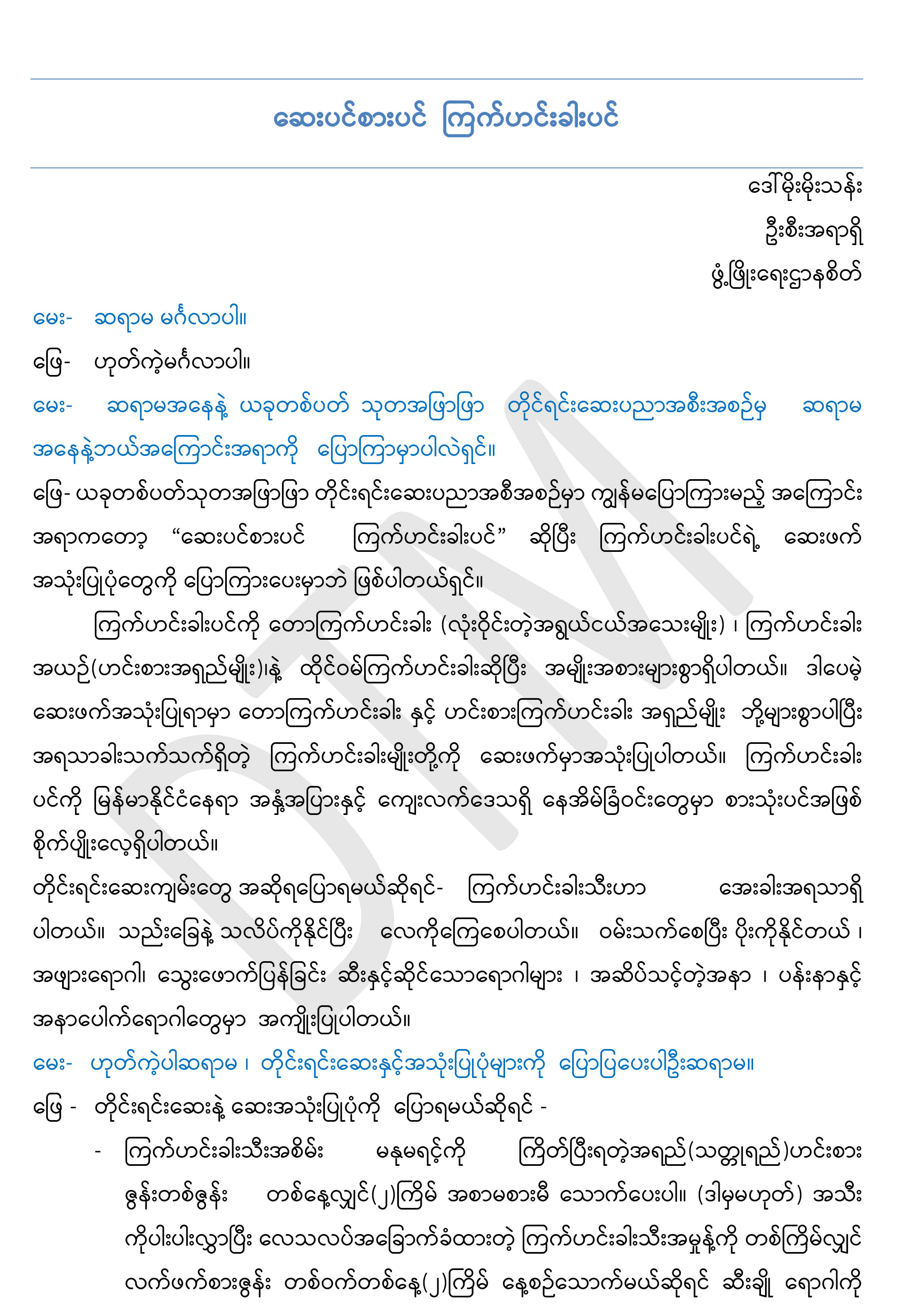 ထို့နောက် တိုင်းရင်းဆေးတက္ကသိုလ် ပါမောက္ခချုပ် ပါမောက္ခဒေါက်တာသိန်းဇော်လင်းက အမှာစကား ပြောကြားကာ မော်ကွန်းထိန်းက ဘွဲ့လွန်သင်တန်းဆိုင်ရာ စာမေးပွဲနှင့် သင်တန်းစည်းမျဉ်း စည်းကမ်း များအား ရှင်းလင်းပြောကြားပြီး တိုင်းရင်းဆေးတက္ကသိုလ် ပါမောက္ခချုပ်က တိုင်းရင်းဆေးပညာ ဦးစီးဌာန ညွှန်ကြားရေးမှူးချုပ်ထံ အမှတ်တရလက်ဆောင် ပေးအပ်ပါသည်။