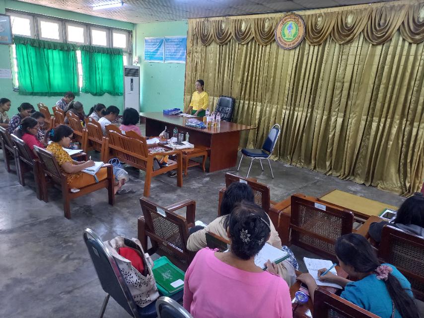 ရန်ကုန်တိုင်း‌ဒေသကြီး၊ အရှေ့ပိုင်းခရိုင် ဒဂုံမြို့သစ်မြောက်ပိုင်းမြို့နယ်တိုင်းရင်းဆေးကုဌာနမှ ဒဂုံမြို့သစ်မြောက်ပိုင်း ပြည်သူ့ဆေးရုံတွင် လူထုကျန်းမာရေးလုပ်သား ပဏာမ ကျန်းမာရေး စောင့်ရှောက်မှု စွမ်းရည်မြှင့်သင်တန်း၌ သင်တန်းပို့ချခြင်း